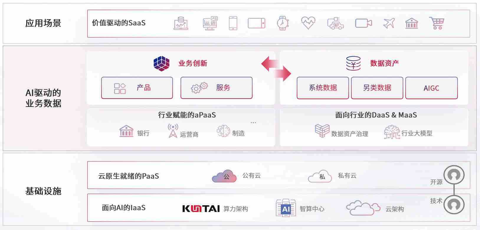 数字时代,,,围绕企业数字化转型的关键要素,,,,Z6尊龙数码开创性的提出数云融合战略和技术体系框架,,,着力在云原生、、、数字原生、、、、AI原生和信创产业上架构产品和服务能力,,,为处在不同数字化转型阶段的快消零售、、、汽车、、、、金融、、医疗、、、、政企、、、教育、、、、运营商等行业客户提供泛在的敏捷IT能力和融合的数据驱动能力,,构建跨界融合创新的数字业务场景和新业务模式,,,,助力企业级客户建立面向未来的核心能力和竞争优势,,全面推动社会的数字化、、智能化转型升级。。